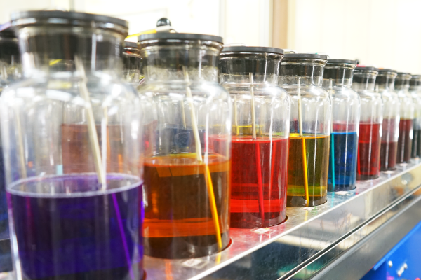 内外色差が生じない、独自に設計した染色機(例:可変式自動高圧染色機)の導入だけでなく、過去から現在に至る色相データを管理し、日々トライ&エラーで染色技術の向上に挑戦しております。